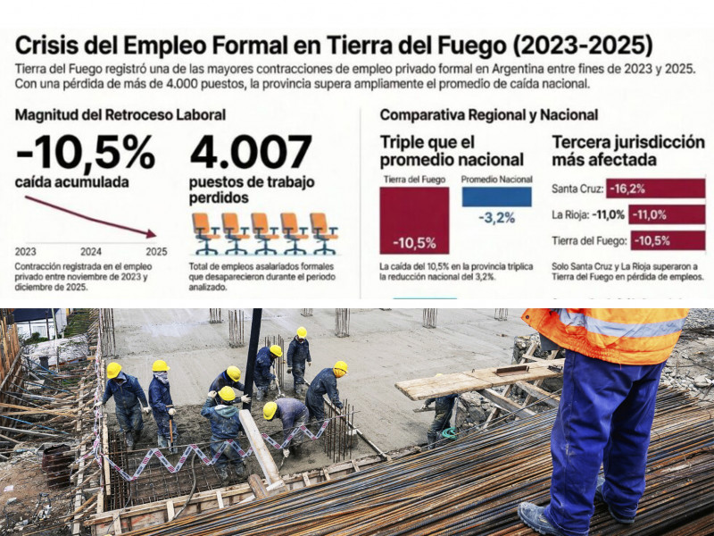 En diciembre de 2025, la provincia contabilizó 34,8 mil puestos de trabajo asalariado privado registrado, frente a los 36,9 mil observados en igual mes de 2024. Esto representa una disminución interanual del 5,7%, una de las más pronunciadas a nivel nacional. De este modo, Tierra del Fuego se ubicó como la tercera jurisdicción con mayor caída interanual del empleo privado formal, solo por detrás de Santa Cruz (-10,5%) y Chubut (-6,4%).