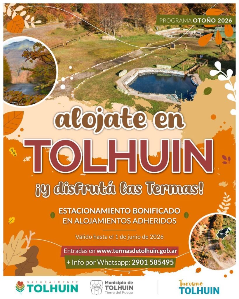 Para acceder a los beneficios, se encuentra disponible un listado de alojamientos adheridos en el perfil de instagram @turismotolhuin, mientras que las entradas a las termas pueden gestionarse a través de la web www.termasdetolhuin.com.ar; en el caso de que se necesite información adicional, los vecinos y vecinas pueden enviár un mensaje de whatsapp al 2901 585495.