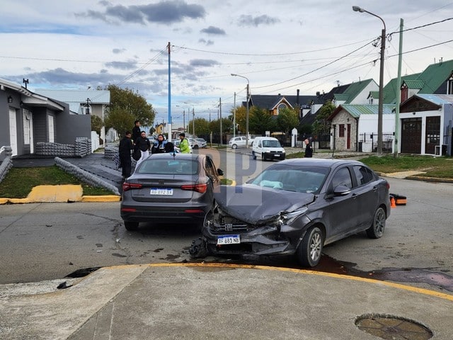 El accidente se produjo esta tarde cuando un Fiat Cronos circulaba sobre calle Buenos Aires e impactó a otro auto similar en el que se trasladaba una pareja sobre calle Ushuaia del barrio Mutual de Río Grande.