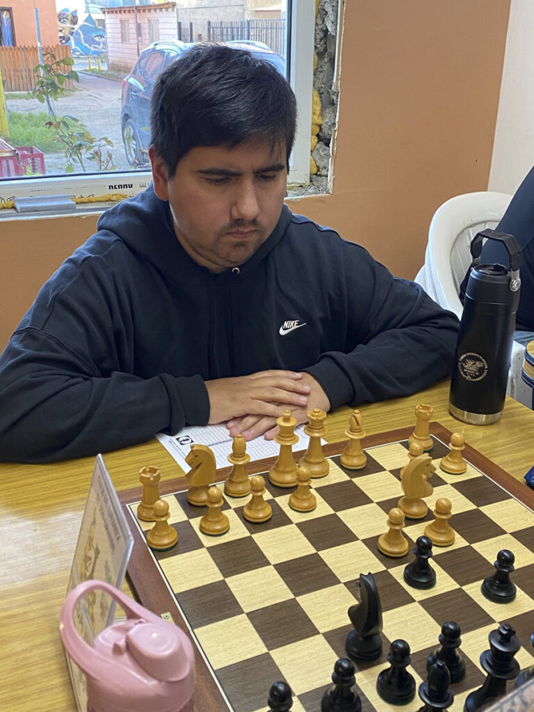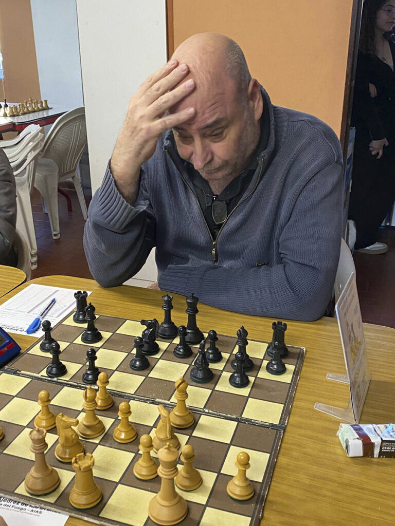 RIO GRANDE.- Tanto Aníbal Adorno como Julio Iragüen comparten la punta en la tabla de posiciones, con el puntaje ideal. El experimentado jugador, quien fuera reconocido en el acto de los Premios Ciudad de Río Grande, por su más de cuarenta años en la disciplina, venció sucesivamente a Guillermo Gallardo (con las piezas negras), Quimey Carvajal (blancas) y Franco Balderrama (negras).