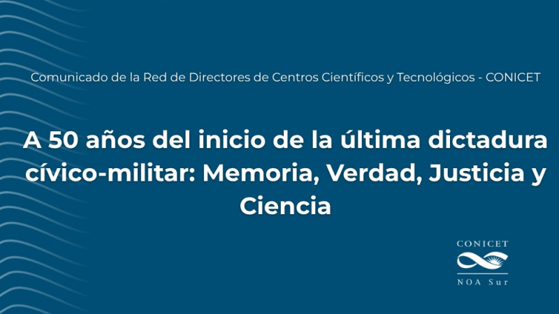 La Red de Directores de Centros Científicos Tecnológicos del CONICET emitió un comunicado en el 50° aniversario del golpe de Estado de 1976, en el que reafirmó su compromiso con la memoria, la verdad y la justicia. Señaló que el sistema científico fue blanco de persecución durante la dictadura, con desapariciones y exilio de investigadores. “No hay posibilidad de desarrollo científico sin libertad de pensamiento ni respeto a los derechos humanos”.