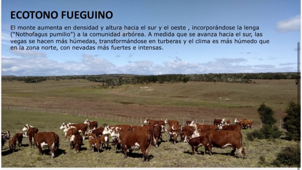 En la comparación con otras provincias patagónicas, Pechar introdujo una variable clave: la productividad del suelo. “En Tierra del Fuego se necesitan entre 10 y 14 hectáreas por vaca, pero en la meseta de Santa Cruz se pueden necesitar 100 hectáreas por vaca”.