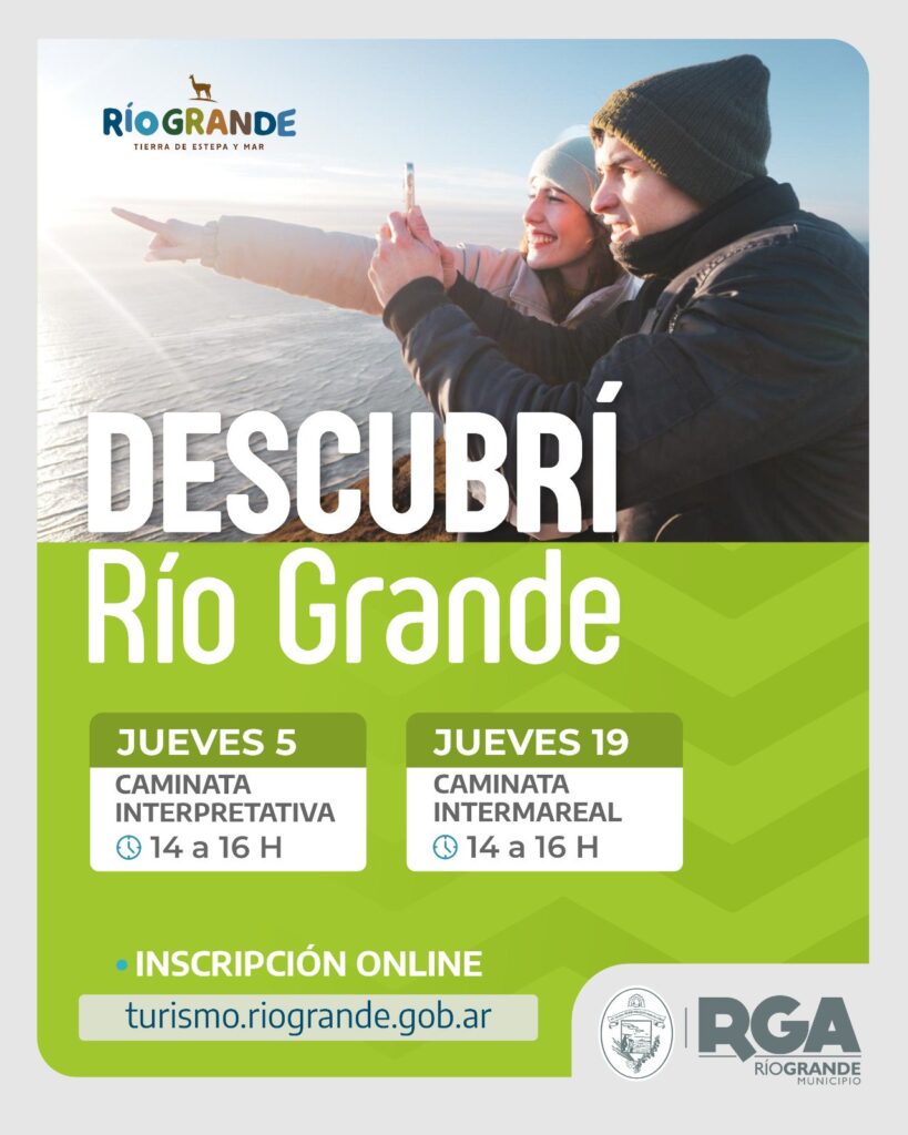 Asimismo, se llevará adelante el programa “Descubrí Río Grande”, que propone caminatas guiadas para conocer el entorno natural de la ciudad. En este marco, el jueves 5 de febrero se realizará una caminata interpretativa, mientras que el jueves 19 tendrá lugar una caminata intermareal. Ambas actividades se desarrollarán de 14 a 16 horas.