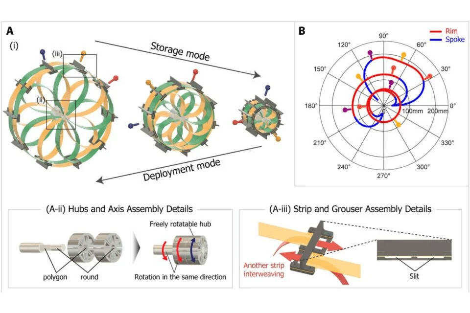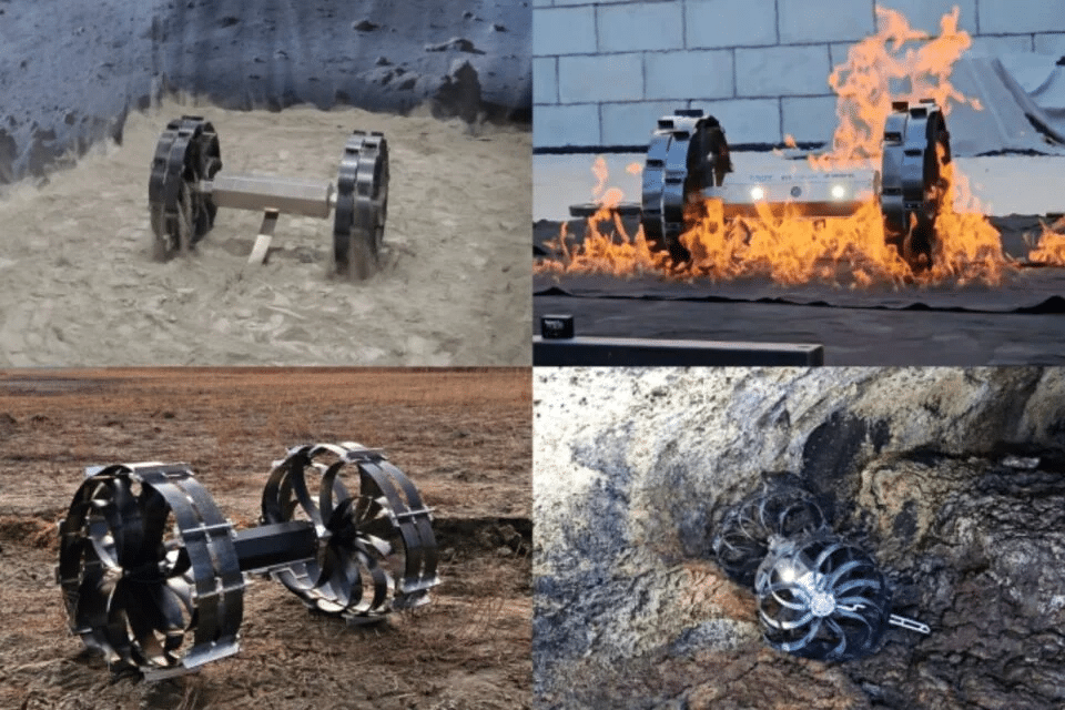 La clave está en las ruedas. No son rígidas. No tienen radios ni llantas clásicas. Están hechas de láminas metálicas ensambladas en forma de hélice, capaces de expandirse y contraerse. Pueden pasar de 23 a 50 centímetros de diámetro simplemente torsionándose, como un muelle. Ese diseño les permite tres cosas críticas: entrar por huecos estrechos, absorber impactos y superar obstáculos irregulares. En las pruebas, el rover soporta caídas, se adapta al terreno y mantiene la tracción en superficies que harían volcar a cualquier vehículo convencional.