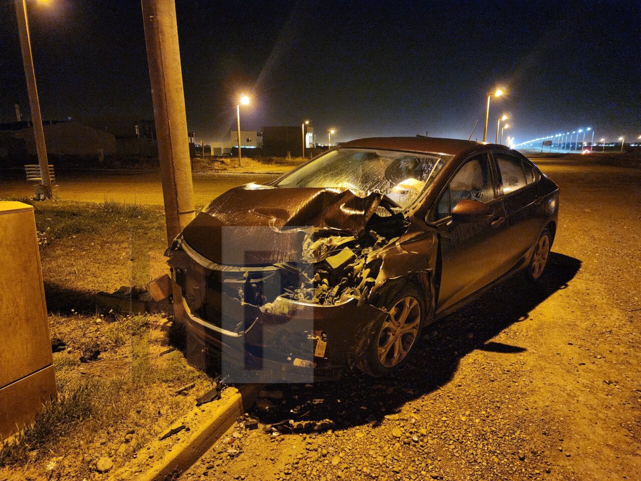 Una camioneta antigua Ford modelo 1964, perteneciente a una constructora, impactó con rodado Chevrolet Cruze, en cual terminó contra una columna de hormigón.