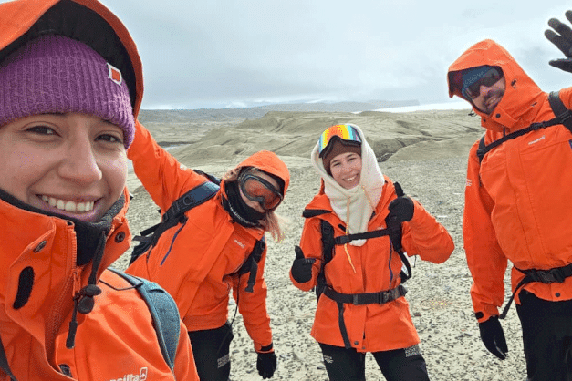 Las estudiantes avanzadas de la Licenciatura en Geología de la UNTDF Antonella Toledo Oyarzo y Micaela Arias, junto a la Licenciada en Geología Josefina Taffarel y bajo la supervisión del…